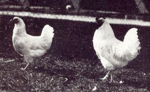 This now extinct breed was developed in Spain in the decade between 1910 and 1920. The first generation parent stock was a White Orpington male crossed with Catalan de Prat. then Rhode Island (White?) genes were added. It was accepted as a recognized breed in Paris in 1919.