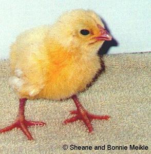 A White Chantecler chick Four-day-old Buff Chantecler chicks Buff & Partridge Chantecler chicks A Partridge Chantecler chick at one week