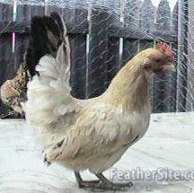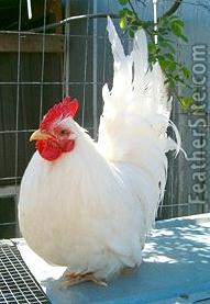 Two Frizzled Japanese bantam hens: a White and a