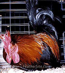 Their outstanding features are the very short, clean legs and their tail carriage: A Japanese bantam's long tail is carried high and well forward, in a manner that is normally called squirrel-tailed and is a disqualification in most breeds. They have an evenly serrated single comb, rather large on the males, and the face and ear lobes of the birds should be bright red.