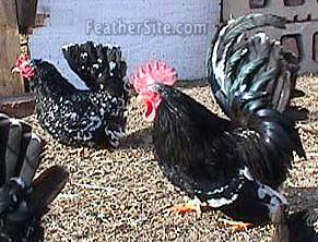 The Japanese bantams are true bantams, not miniatures of a large fowl. They occur in various colors, including Black-tailed White, Black, Mottled, Black-tailed Buff and Gray.