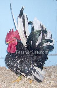 A Frizzled Mottled Japanese bantam male