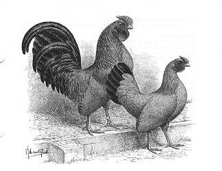 The Nankins reached Britain in the 1700s. Suggestions that the fowl originated in Britain sometime after 1847 are clearly erroneous. Nankins are often considered true bantams without a large counterpart, but both large fowl and bantams were originally imported to Britain. Both were much admired for their black tailed light chestnut red coloring (more brilliant and lustrous in the males, approaching orange red on the head and saddle). Sadly, large fowl with blue or green legs faced serious prejudice in Britain and disappeared before the middle of the 19th century. In Hong Kong in 1975 I talked to an Englishman who had seen a flock of large fowl in the New Territories that reminded him of Nankin bantams. The large fowl may still exist in the Orient. The sprightly bantams were for a time one of the most popular breeds in Britain.