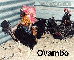 The Ovambo originates in Ovamboland in Northern Namibia, from whence I received my first hatching eggs and chickens in 1975 from Dr. J.J. Joubert who had been given some while visiting the region. Their historical development is similar to that of the Venda, where their ancestors were probably introduced by the early pioneers to the region from South Africa and the German colonialists of the time. The breed evolved as survivors which scratched out an existence in barren semi-desert, hot environmental conditions plagued by predators and raptors. The breed is prone to flying into trees to roost at night where they escape predators and raptors. They are thus obviously a lighter breed while it is speculated that their predominantly dark colouring is attributed to natural selection where all light coloured individuals were conspicuous and fell prey to raptors.