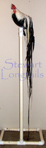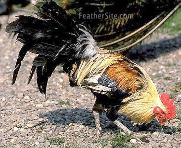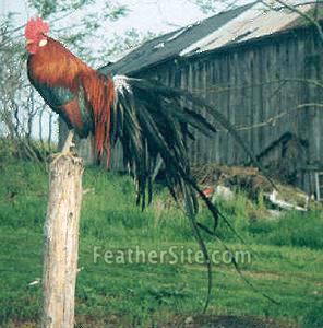 Phoenix are descendants of the chickens that are seen in Japanese illustrations, which bear tails of 15 to 20 feet or longer. (This bird is often referred to as the Japanese Phoenix, but although it is descended from Japanese Longtail fowl, the Phoenix itself is not a breed from Japan.) The only breed today that gets a tail of this length is the Onagadori. After the second year, the roosters no longer molt their sickle feathers. To maintain these tails, the birds are kept up on high roosts the way parrots are. Most of the Longtails do partially molt their sickle feathers each year, although individual feathers may be shed only every second or third year. This gene can be selected for, and a careful and longterm breeding project can produce birds with nonshedding tail feathers.