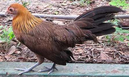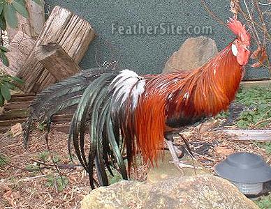 A Black-breasted Red Phoenix rooster BB Red Phoenix roosters Rick Martin's flock of BB Red Phoenix This trio is from Turkey A bantam BB Red cockerel from Germany Another BB Red Phoenix rooster Two-week-old BBR Phoenix chicks Other Varieties