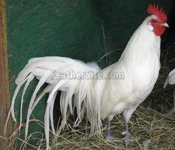 White Phoenix cockerels White Phoenix roosters White Phoenix hens A young pair of bantam White Phoenix surrounded by adult males Black-breasted Red Phoenix