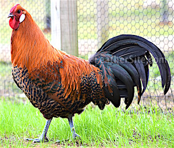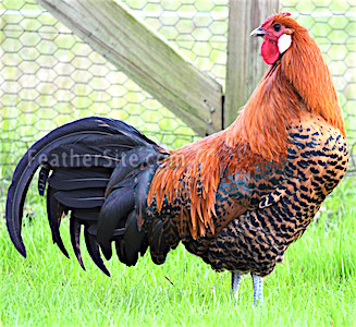 Gold-pencilled Deathlayers: Two cockerels and a pullet
