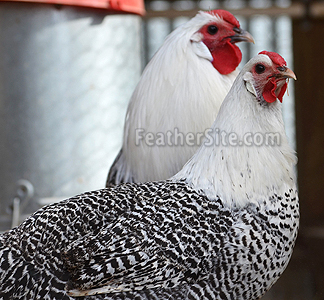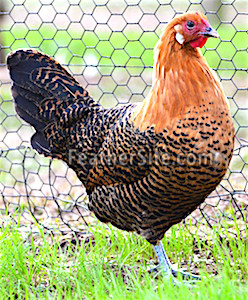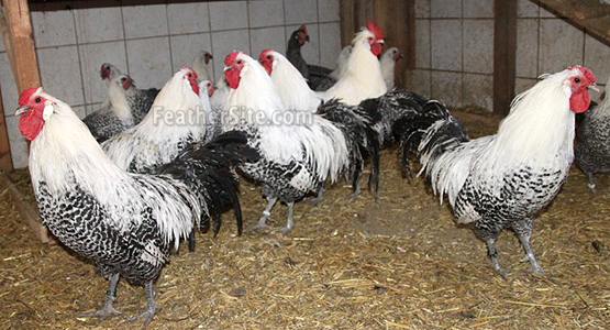 The birds are found in both Silver and Gold Pencilled and sport rose combs. They are related to several northwest European breeds, including the Braekel, which they resemble closely except for their rose combs. Roosters weigh around 2kg (5 pounds) and hens about 1.5kg (3 3/4 pounds).