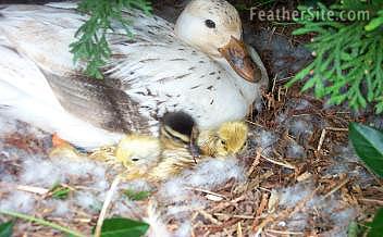And they make good mothers, as this Snowy hen (left) and this White hen