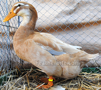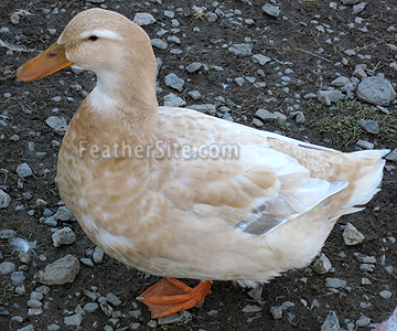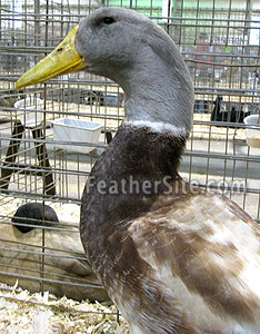 This is a German heavy breed of duck -- a dual purpose bird for both eggs and meat. The drakes are colored somewhat like a faded Mallard, the ducks a soft buff; both have a hint of greyish-blue to their plumage. Males weigh 8 pounds, females around 7.