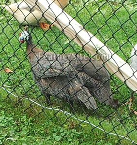 These very noisy birds look like a bunch of AWOL army helmets as they run across the yard. They are said to be good for controlling the Lyme Disease-bearing deer tick. I don't know any research on this, but lots of folk believe it and I sure hope it's true. They certainly range well and eat lots of small things. In fact, if you keep bees, you don't really want to keep guineas. They'll stand by the hive and snap up the bees as they come out. I haven't yellow jacket nests out in the field since I've had these birds.