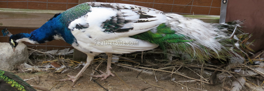 A pair of Silver Pied Peafowl, with their Oaten Peahen companion, at Frazier's Aviaries