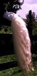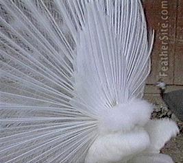No one and nothing is as beautiful as Snowman. He's the showpiece of the farm. Here he is with his tail (train) spread, and here's the view from the rear. And you can watch the 5.5 second, 867K movie Snowman Running.