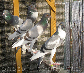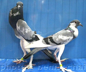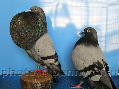 Bavarian Pouters on the left, English Pouters on the right