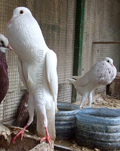 These interesting and somewhat comic birds are among the oldest of pigeons breeds. Pouters are among the tallest of pigeons and these slim birds can stand around sixteen inches tall on their very long legs. They carry themselves upright--in a manner reminscent of the Runner Ducks--and their globe or crop balloons out in front of them