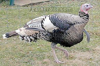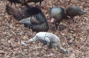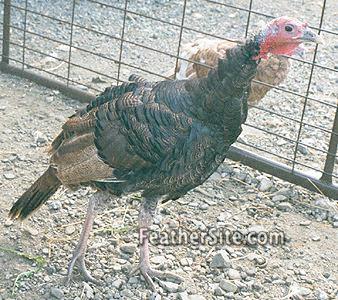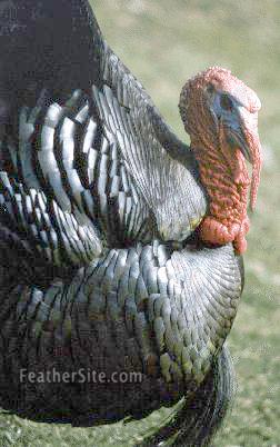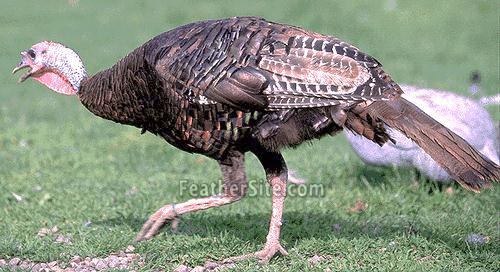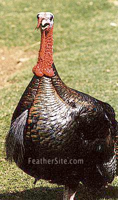 In 1992 I had only one domestic turkey, a black hen. She mated with a wild male that flew in over the fence and I have their son, "Old Crow," who looks like a pure wild turkey. And here's a 6.5 seconds, 1041K movie of "Old Crow" chasing his son "Muhammed" around.