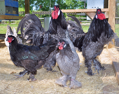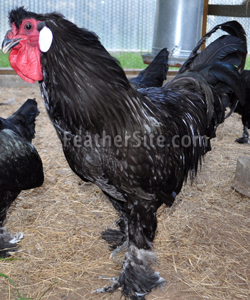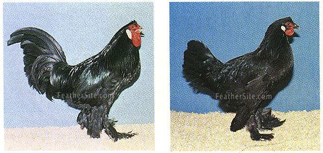 The Breda is generally conceded to be a composite breed, but a rather early one. As far as I know, no definite records exist as to how it was produced. That it has some crested ancestry is obvious. I've mentioned that it is considered a Dutch breed, but minority opinions argue for a Belgian or French origin. The Malines is often mentioned as a probable ancestor and certainly would account for the feathered legs. That leaves us without a ready explanation for the vulture hocks. I've heard suggestions that Sultans crossed with Malines or Asiatics could have produced them, but this is a fowl that developed long before any Sultans or most Asiatics appeared in Western Europe.