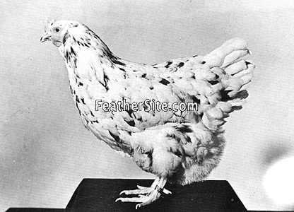 While reading through the genetic studies put out by the various geneticists, one will notice that the Erminettes under their studious eyes were of a general type and form. When pictures are provided, there appears a type which is clean legged and single combed and has a general build that resembles closely the Plymouth Rock. It thus appears that of the three prevailing "types" of the late 1800's, the last to remain was the single combed clean legged version. If others remained, they did so in secret, and the various studies (particularly FB Hutt's) no doubt helped to forge in the minds of poultry fanciers what the Erminette looked like by virtue of presenting a form and type more unified than had existed in the past. We might even be so bold as to say that if an answer can be provided for our above stated question, it may be that the moment the Erminette transformed from a color variety to a distinct breed was the moment the other two variations went extinct, allowing the Erminette to lay claim of distinction in the hands of default rather than in the hands of organized breeders.