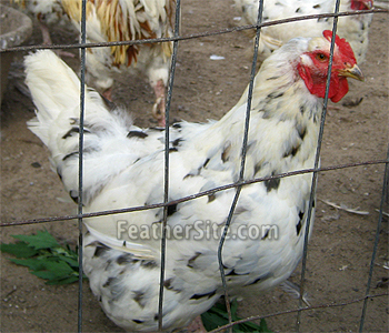 Around the 1860's just such a group of fowl were brought to the shores of America. They hailed from the West Indies and exhibited a beautiful coloration, being mostly white with a few random solid black feathers throughout their bodies. Over the next couple of decades this pair had multiplied and there was a very small but dependable group of breeders raising this stock under the name of West India or more commonly the West Indies. What had made this recent import so unique was not its shape but rather its coloration. As stated in The Poultry World of 1877, volume VI, the West Indies were "fowls resembling very much the Leghorn in size and shape, but the combs were very much smaller, the hen having very much smaller comb, and the cock's comb being about one third the size of the usual Leghorn comb. In plumage they were white, evenly splashed with solid black feathers." What was also noted about the West India was that their preferred coloration would not breed true to type. When two West Indies were bred together they would hatch out in white, white with black spots, and solid black. While breeders of other breeds were very interested in introducing this coloration to their breed, it appears the West India breeders themselves were unable to formally organize the breed. What is known about their lack of organization is that the West India was extinct by the early twentieth century, what is unknown is when exactly they made their departure from our realm.