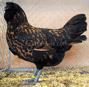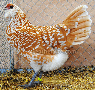 Owlbeard hens -- Blue, Gold Spangled and bantam Silver Spangled