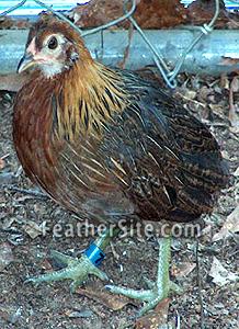 3. Quetro are tiny to moderate-sized bantams with very small wattles and comb. They are remarkable fliers and generally silent. The crow is described as a "laughing crow." These fowl have ear tufts, though the ear tufts of the females are often very small, and very little or no bare facial skin shows. These birds are always tailed. Females tend to be strikingly beautiful, some with dark mahogany breasts and others with pale salmon breasts or wheaten. All female Quetro will exhibit unusual and highly concealing patterns in the wings and hackles. In pattern, the breast of the male is similar to the hackle. The hackle itself is often hair-like and it is not unusual to produce birds with "cowlicks" in the hackles or slightly frizzled individuals. Egg color is highly variable. Some strains usually produce lilac or an intense grey lilac blue. Other strains lay a vivid orange egg, others red ochre and still others lay spotted pink or clear green eggs. They are found only in the Peruvian Highlands and can still be observed on the reed islands of Lake Titicaca. The Quetro is believed to have been a highly sacred animal to the Olmec and some of the subsequent Andean cultures.