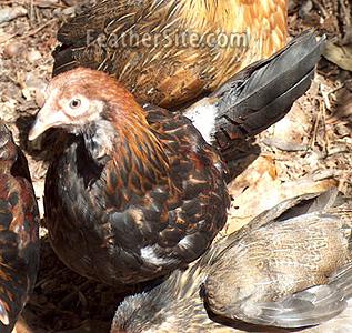 4. The last group consists of the Ayam Pelung derived rumpless games and basket fowl like the Wallikiki, Kainga, and Colloncas, several related rumpless or tailed quail bantams with greatly curtailed wattles, generally lacking combs, and often prominently spotted. Females will often closely resemble the females of the Quetro but lack their tufts and tails. Bare facial skin is generally not evident and the legs are willow or dark but never yellow. Muffs and beards are not present nor are crests or tufts though a few will have the irregular sprig of a tuft. These birds are very quiet when compared to Rapanui breeds. Males may be hen feathered. They lay white, off white, tinted, yellowish or dark aqua or grayish tinted round eggs. This group is found in Sri Lanka, Bali, the Solomon Islands, Fiji, Pitcairn, Peru and Chile.