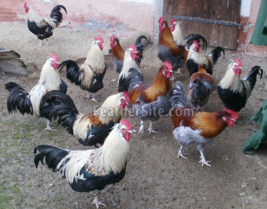 The Sulmtaler bantams we have in Britain came from four distinct strains, three Dutch and one German, there being noticeably different characteristics in each. The use of all four strains has resulted in hardy birds with high resulted fertility and hatching rates.