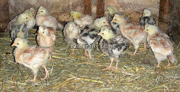 Four-week-old Sulmtaler chicks