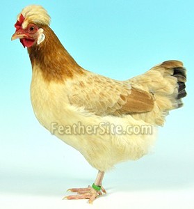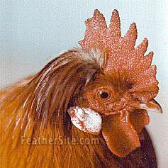 Allowing for the natural sexual differences the hen has a small finely serrated comb often called a 'Wickel' or 'S' shaped, a comb of which the front part falls to one side and back to the other side (irregular). The crest at the back of the comb should be half rounded and not block the vision. The wattles are smaller than those of the male, body appears heavier with a square deep and full breast.