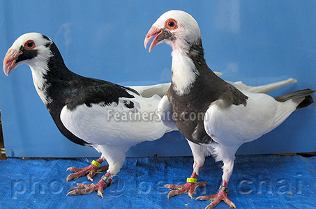 This large pigeon, related to the Carriers, is a German development. With its long neck and legs, strongly curved and heavy beak, and the well-developed beak and eye wattles, it can hardly be confused with any other variety.